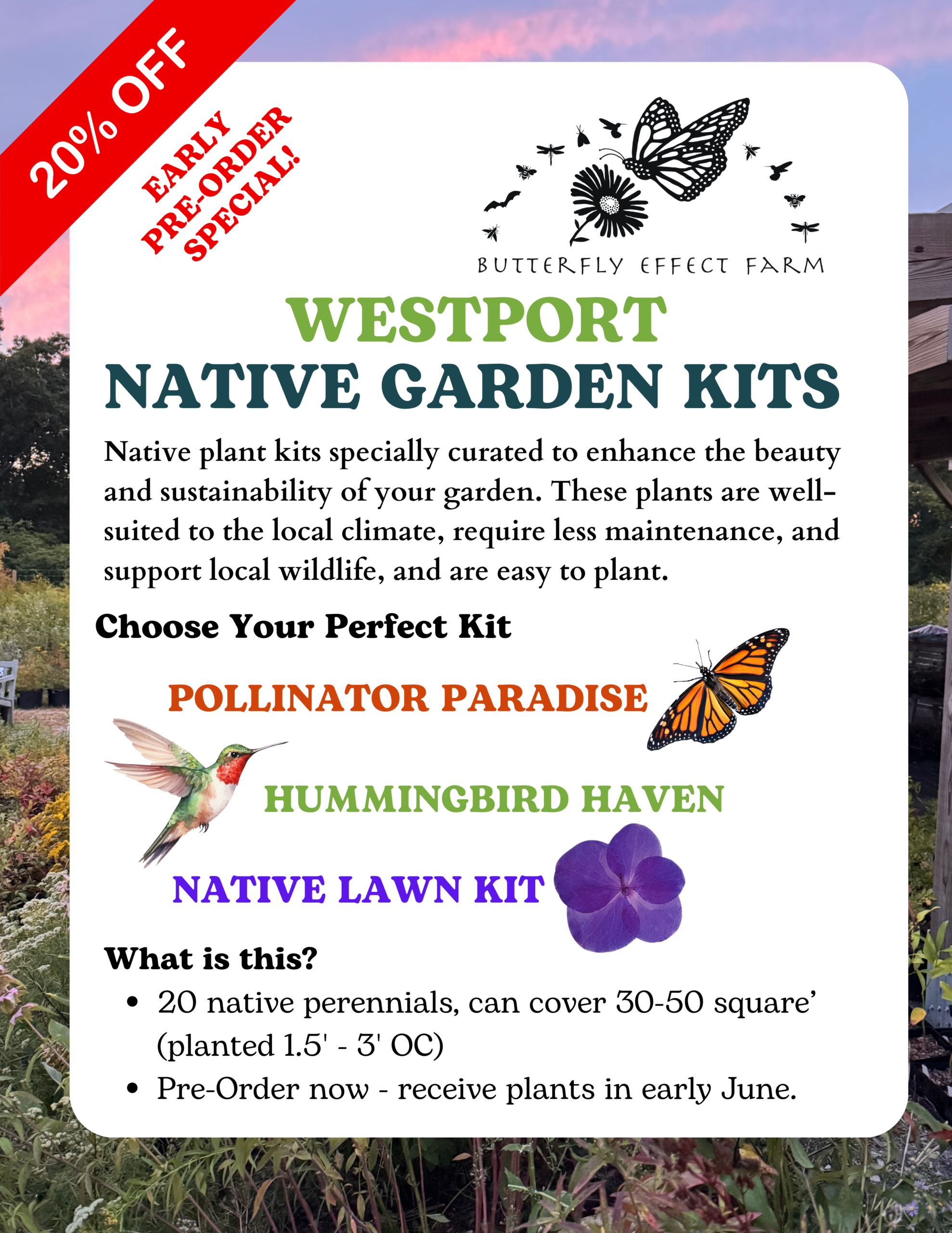 All Westport Native Plant Kits will be available for pickup on the farm on or before June 1st, 2025. Kits are available at 20% off as an early pre-order special!